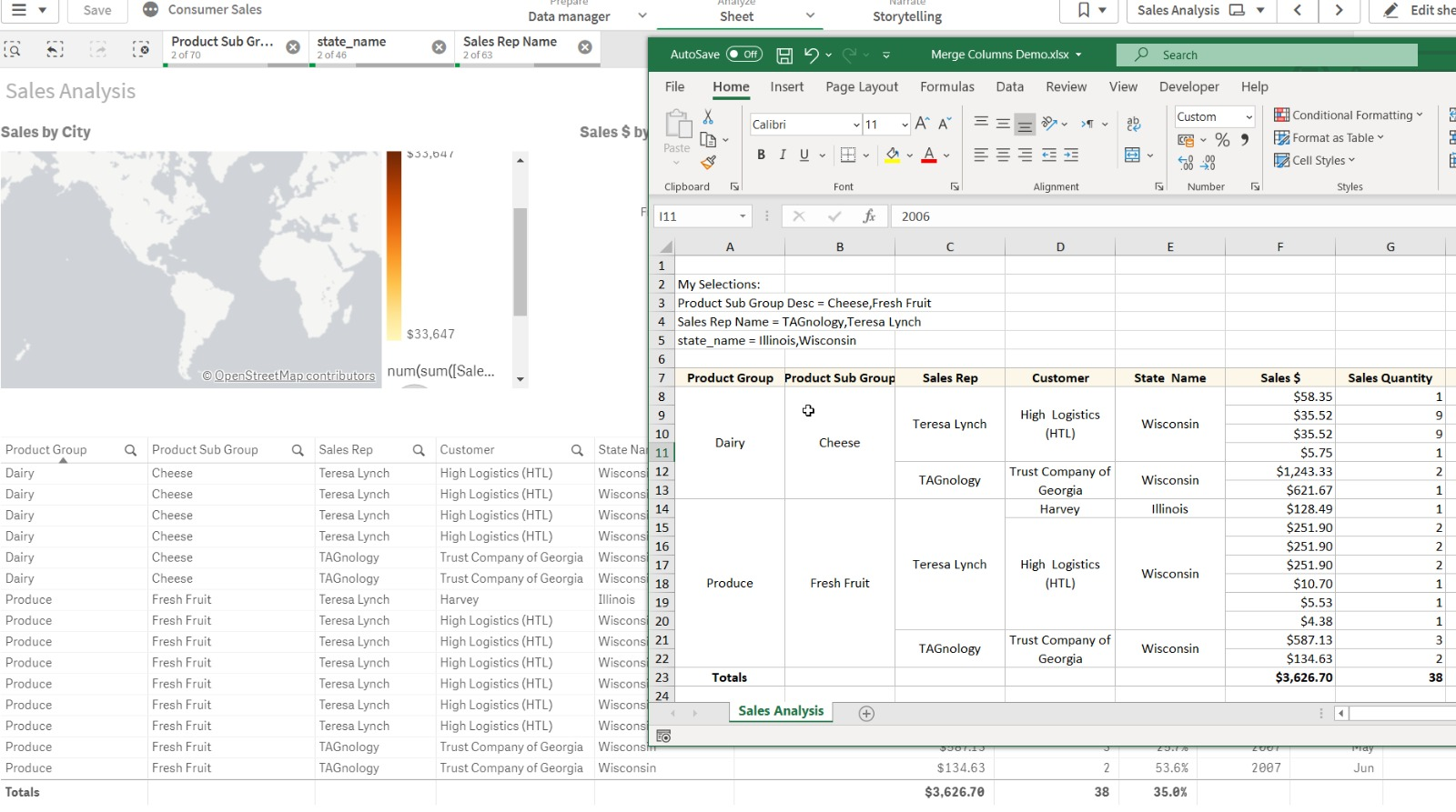 3. Merge fields by value in table: